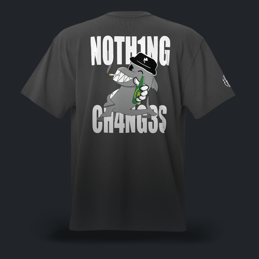 La grafica con lo squalo smoke&drink "N0TH1NG CH4NG3S" spicca sul retro con un look grintoso, vintage ed ironico, da vero rider.