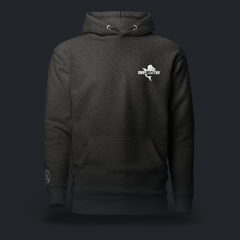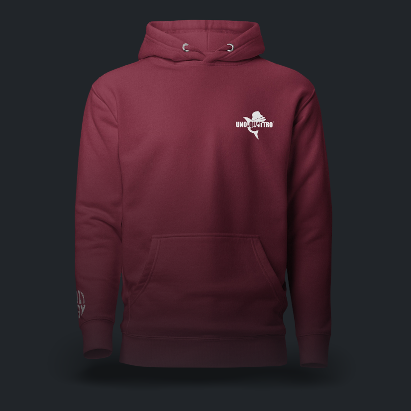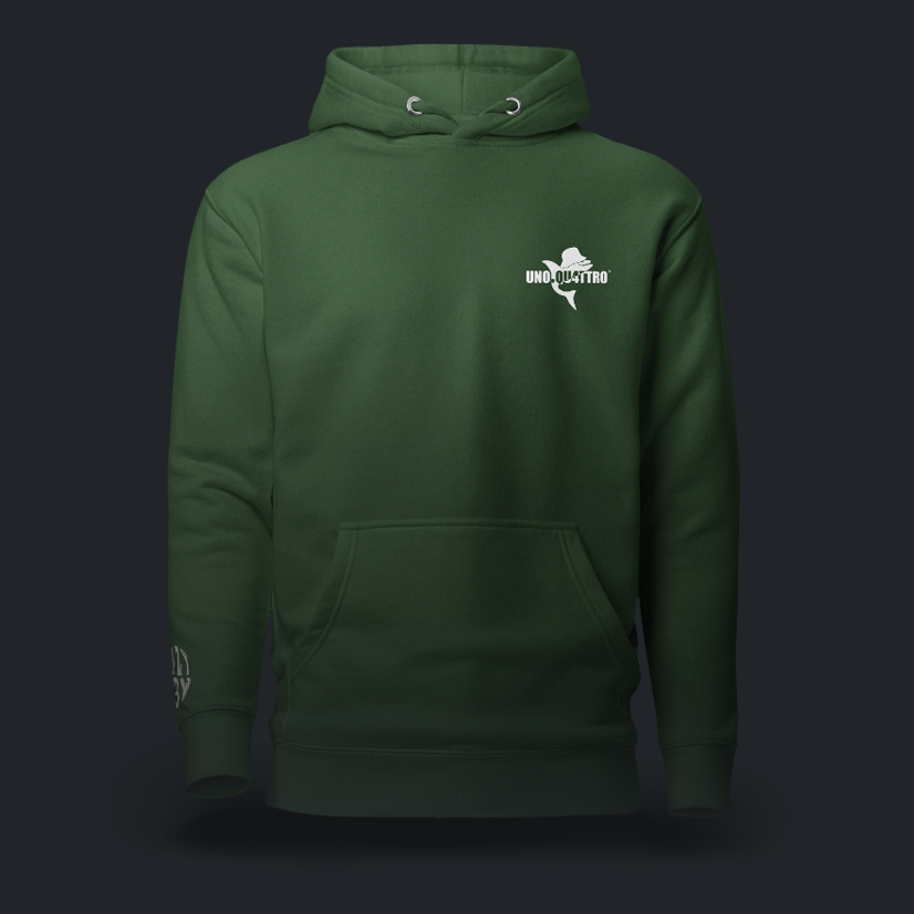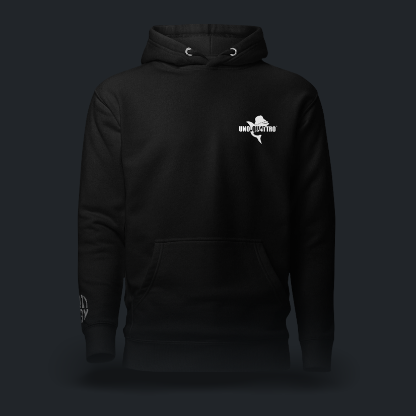Questa felpa streetwear di UNO.QU4TTRO con il logo del brand sul cuore, e la grafica grande, audace e ironica sulla schiena, non può mancare nel tuo guardaroba.
