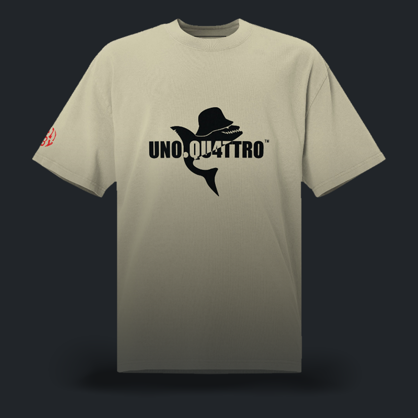 Sul fronte, spicca la grafica audace del logo “UNO.QU4TTRO”, catturando l’essenza del brand.