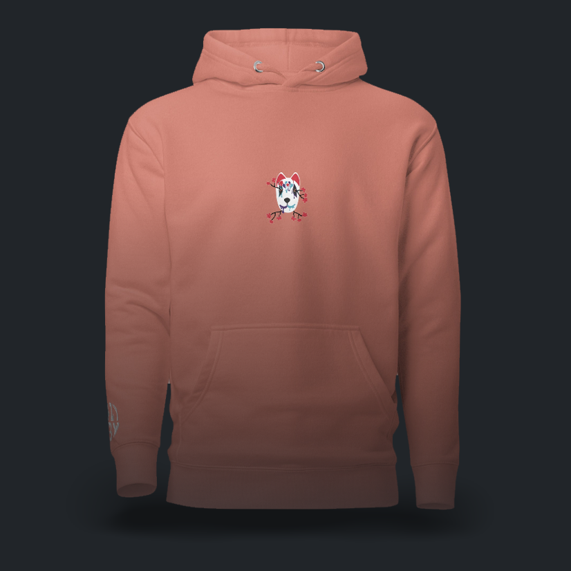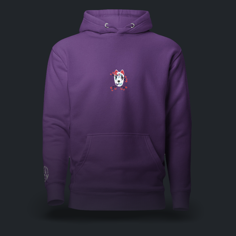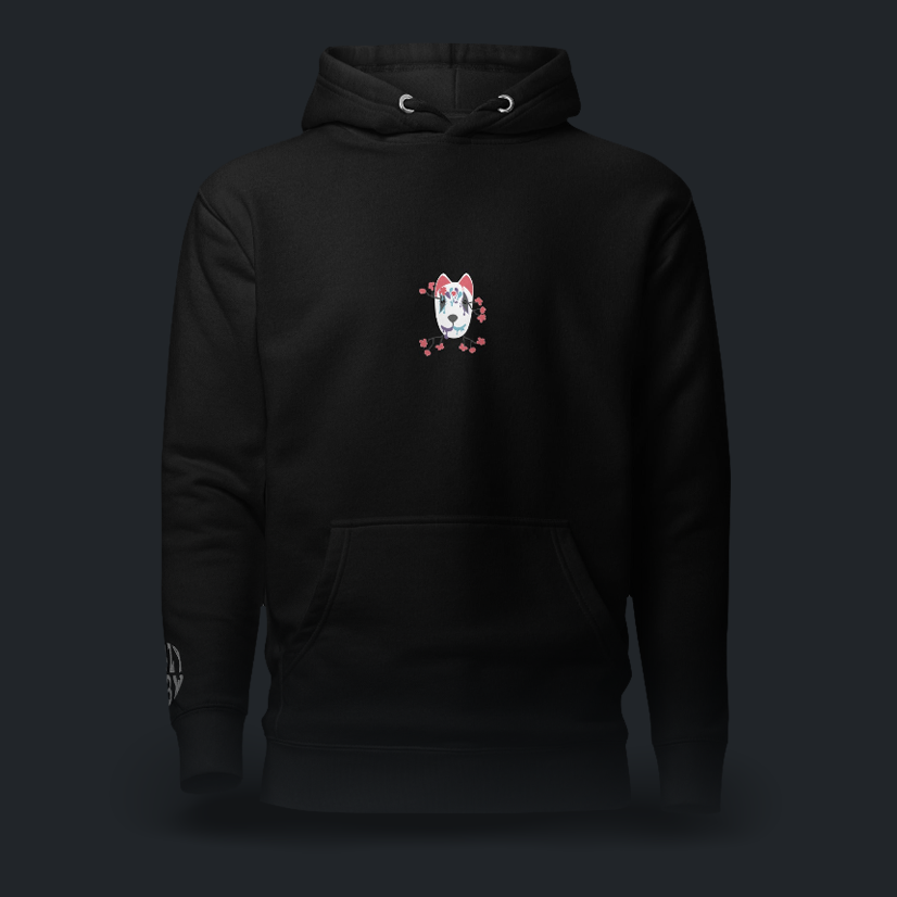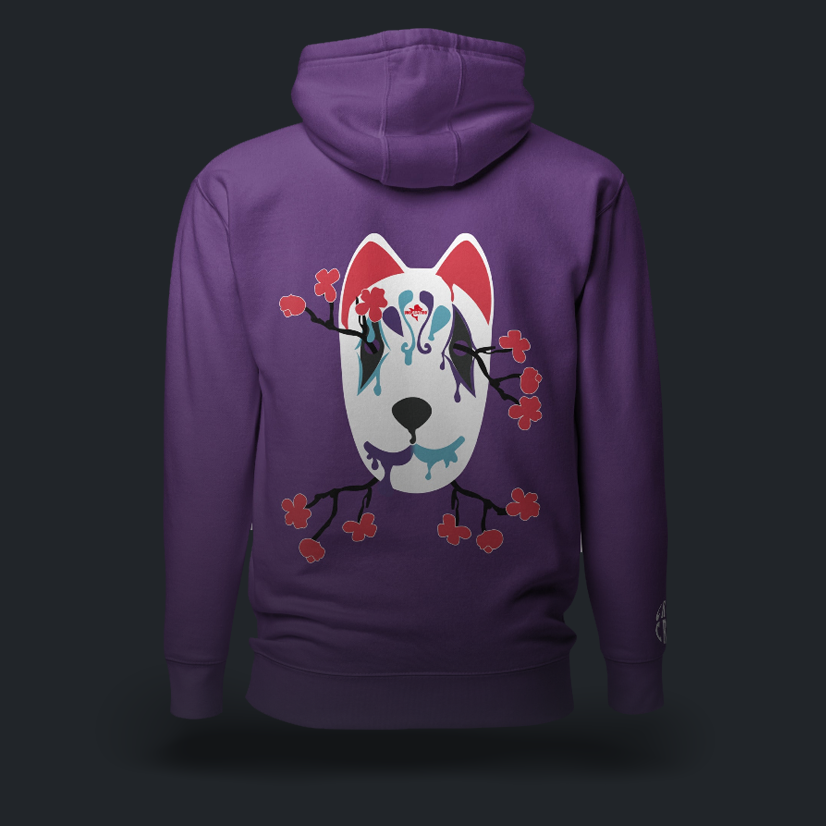 Sul retro della felpa, spicca la grafica della maschera di ispirazione Kabuki, icona caratteristica del brand.